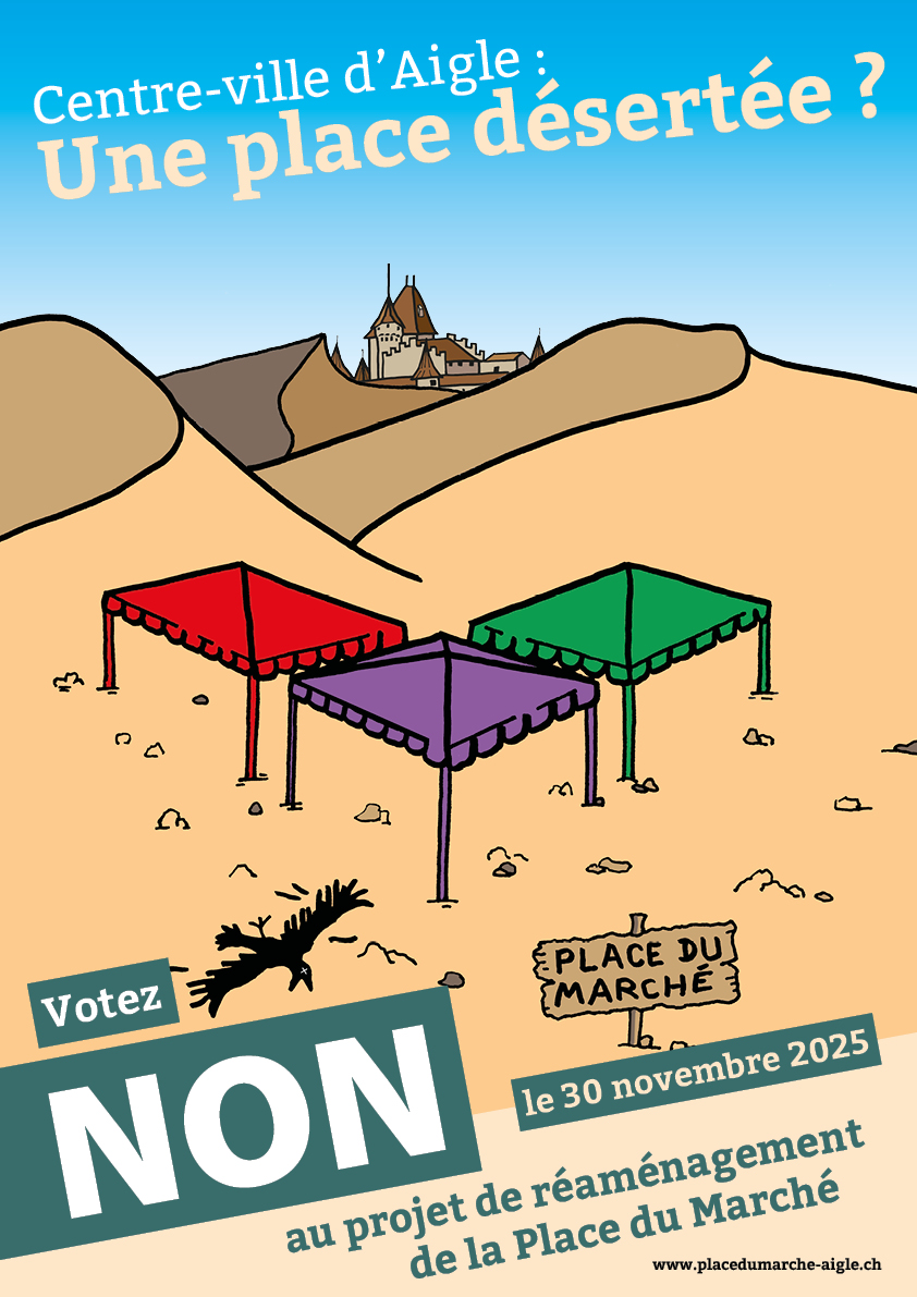 Le 7 avril 2024, la population aiglonne refusait nettement (55% contre 45%) le projet « Crapaud fou » : projet de réaménagement dispendieux pour une place du Marché exclusivement piétonne. La Municipalité n’a pas respecté cette décision, elle est revenue avec quasiment le même projet, au contenu identique, en juin 2025 !